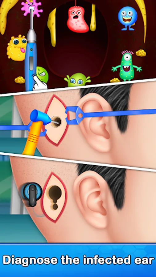 Ear Surgery: The patient is suffering from an ear infection and that causing the pain, start the process by cleaning all the bacteria from the surface.then