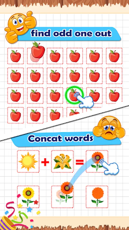 A unique Emoji puzzle game in which you must connect two emojis by their matching pairs. There are different kinds of levels where you have to find odd emojis from multiple objects, match the pair, guess the word from emojis, etc.