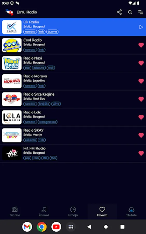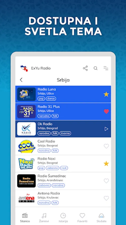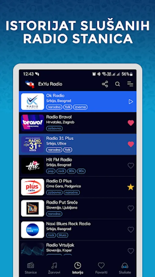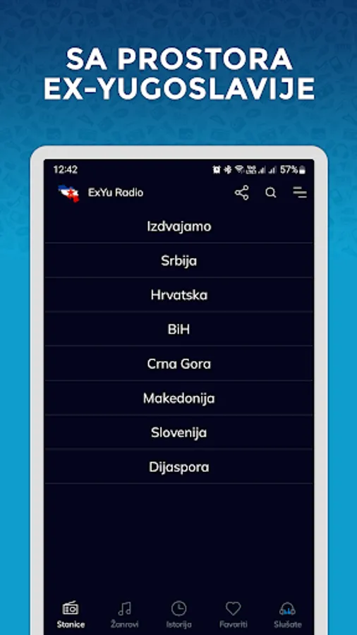Slušaj radio stanice iz Srbije, Hrvatske, Bosne, Crne Gore, Severne Makedonije, Slovenije i dijaspore preko nove aplikacije Ex Yu Radio.
