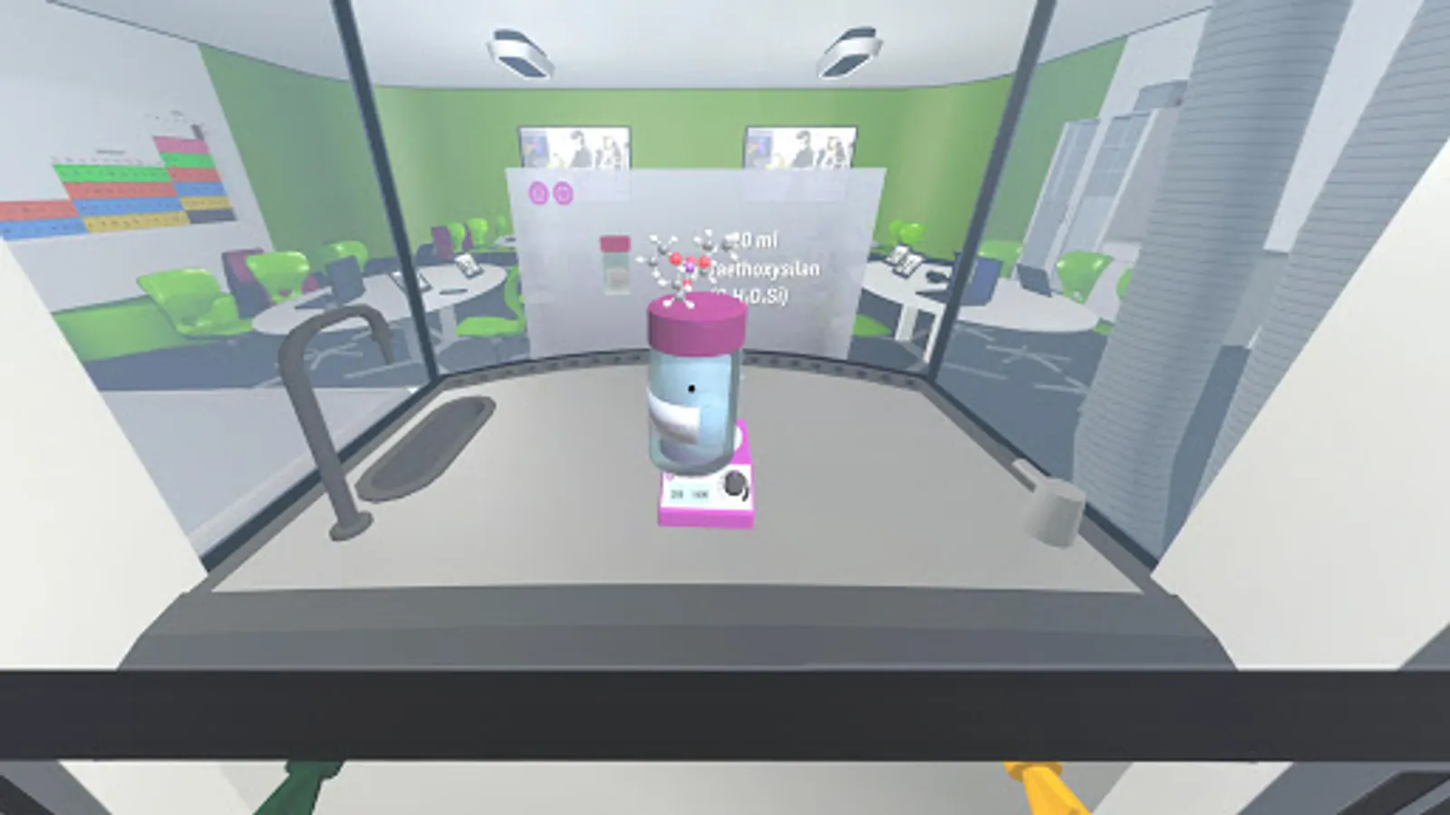 The Virtual Reality (VR) app CyberClassroom_togo enables, among other things, virtual chemistry experiments to be carried out, chemical reactions and compounds to be experienced in real time and the basics of the theory to be learned intuitively. Without any effort to set up the experiment and without any dangers. This digitally supplemented mobile learning enables new access to complex knowledge: The learning process is activated and intensified through visual, immersive and interactive use. Facts can be learned more easily if structures and processes are actually perceived in three dimensions. Impressions can be experienced that are not tangible in reality, for example because certain processes run too quickly or are completely invisible, such as air currents or magnetic fields.