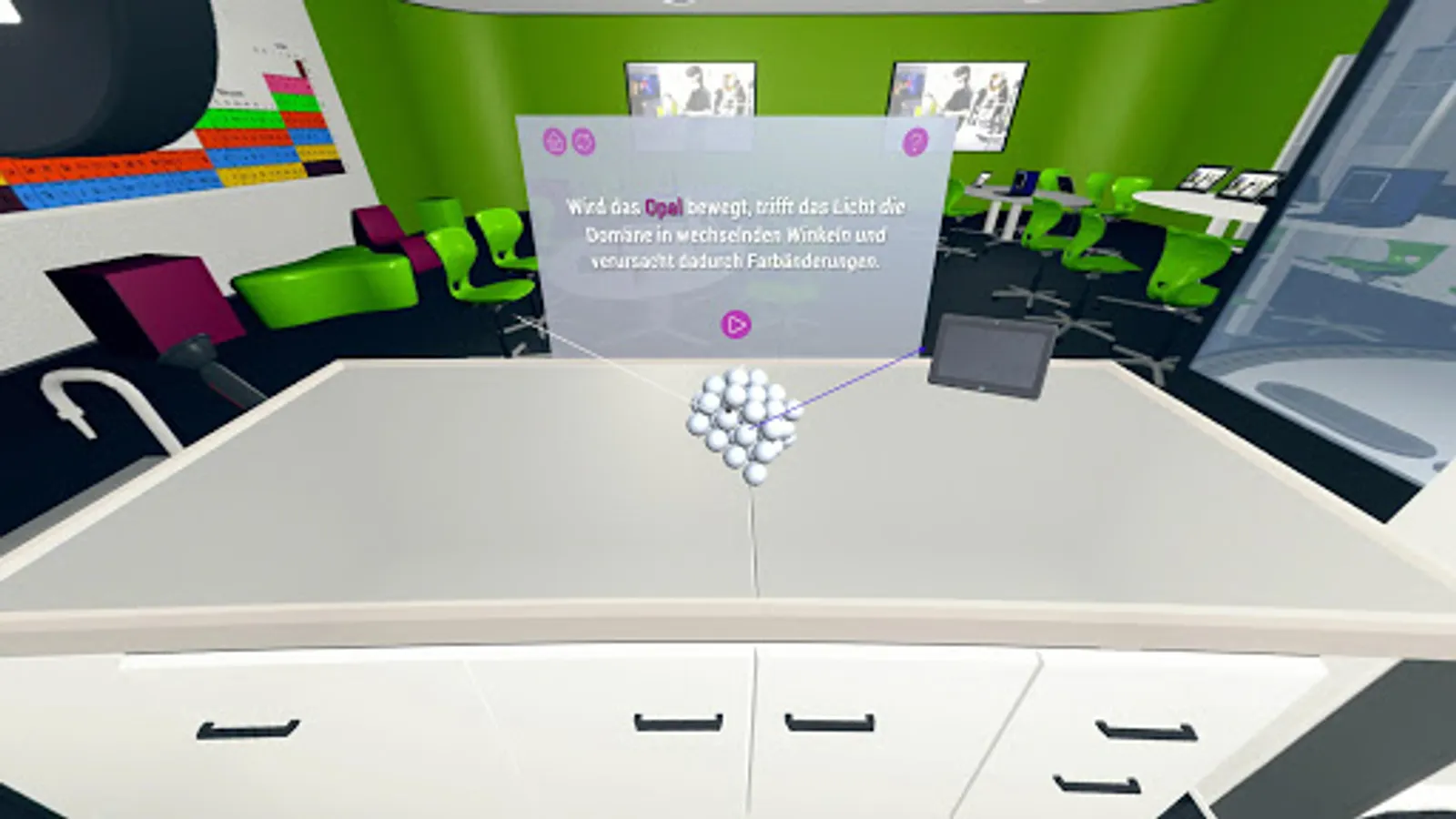 As part of the standard CyberClassroom VR learning environment, the app is particularly suitable as a learning station for imparting knowledge in the MINT area (mathematics, computer science, natural science and technology). It is aimed at schoolchildren, trainees and students.