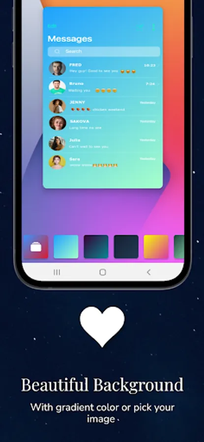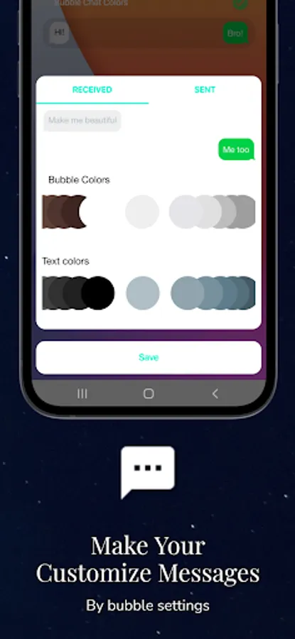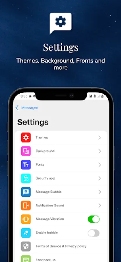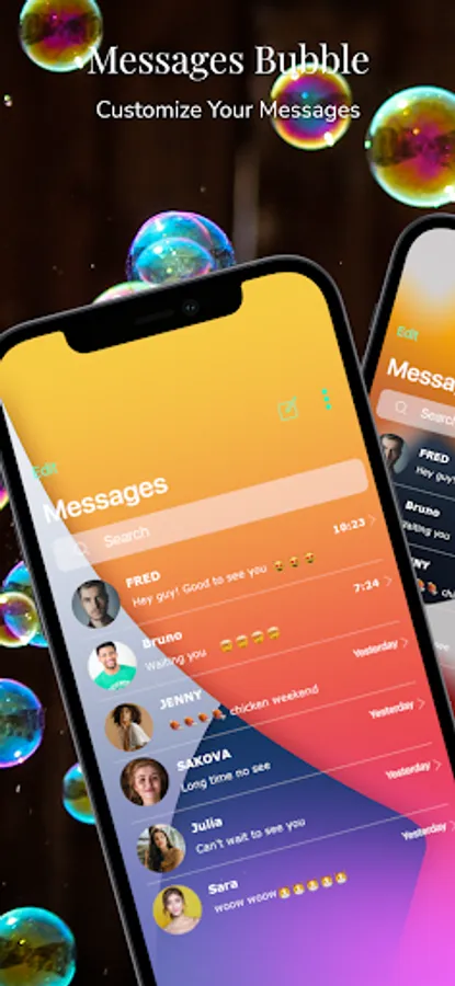 With Messages Bubble, you can custom your conversation with many feature: themes, bubble, fonts, emoji.