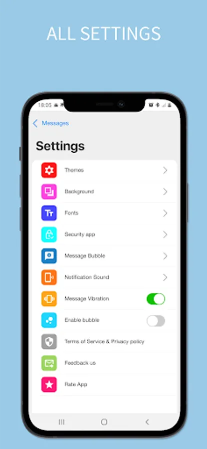 *** iCenter iOS - Messages iOS - iBubble Messages CUSTOMIZE: Do you want more customize themes, bubble, fonts, backround free for Android phone? With iBubble Messages, we have many different settings such as: