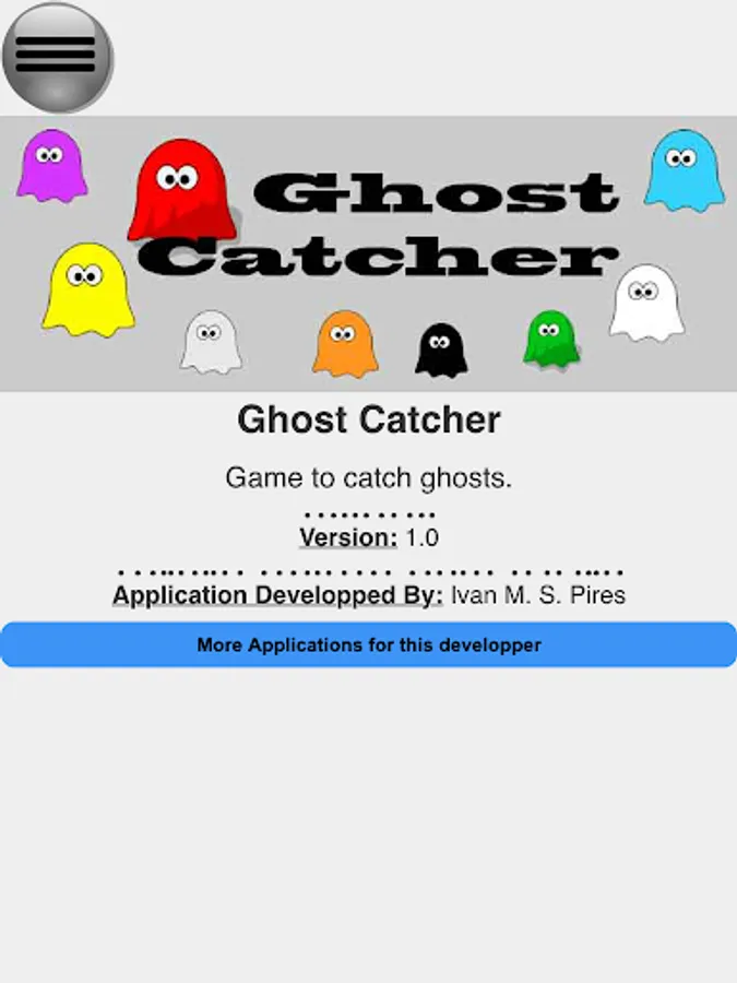 Game to catch ghosts. The game has a ranking for the best players. Each hit the user wins points and he can win lives, the game consists of a timer that gives a final score of bonus to the user.