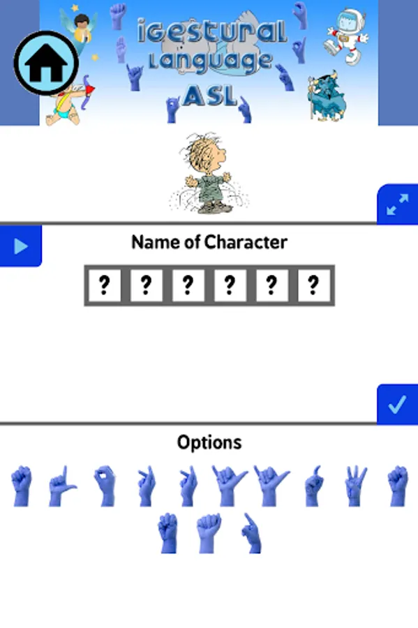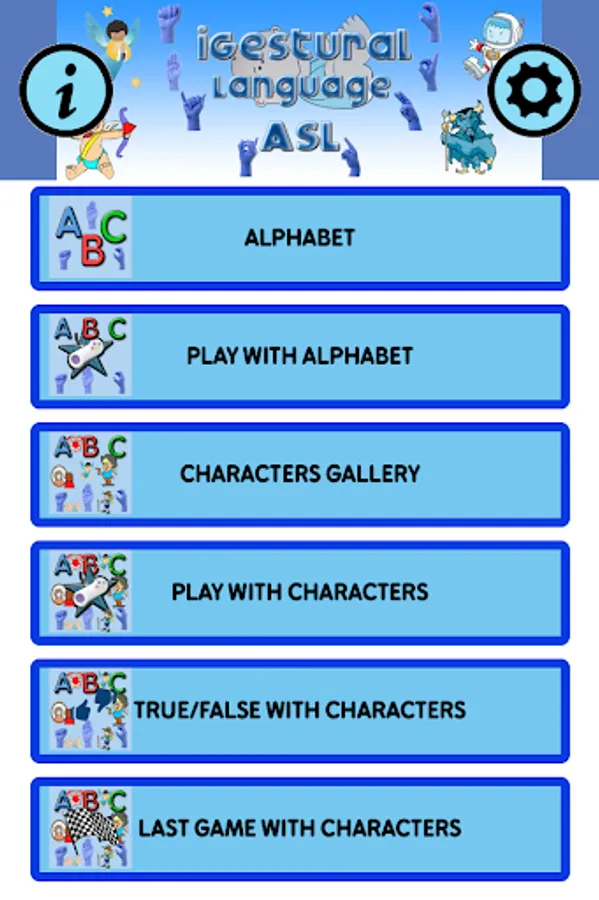 This is a Game/Application to teach the ASL language with some characters and cool method.