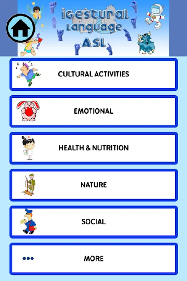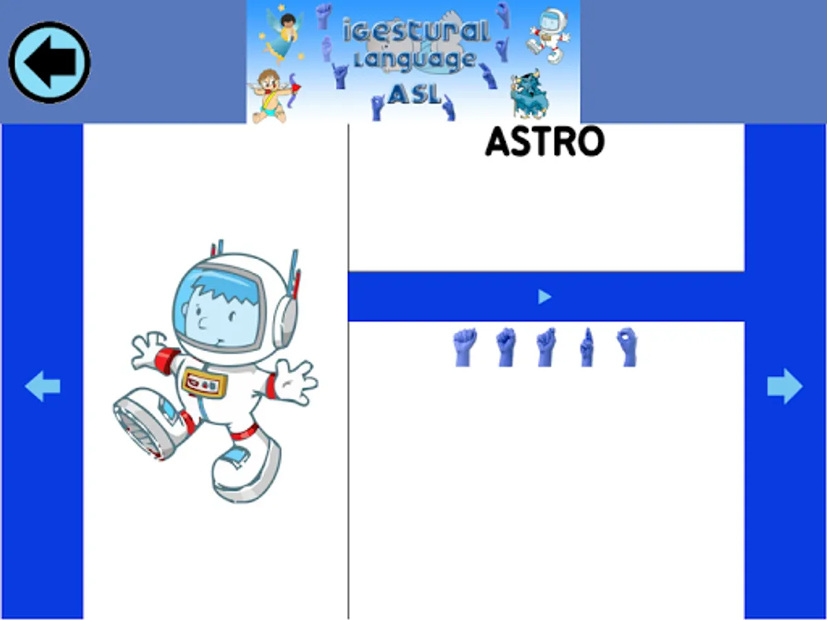 This version is specialty to learn the animals, fruits and vegetables in gestural language.