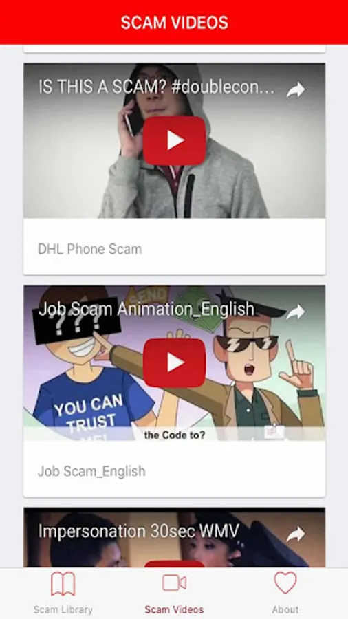 Scammers are a bunch of bad cunning people. But we can learn how to fight scammers and also help the people around us to avoid becoming victims of scams. This app contains the latest scamming plot that are being used around the world. Learn how these scams are being carried out and together we can help to fight scams.