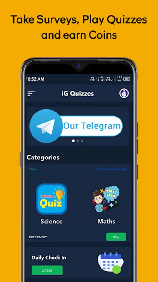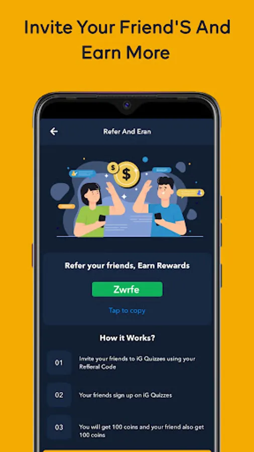 iG Quizzes - Daily Earning App is the best money earning app in 2022. Earn unlimited FREE Cash with Earning App by Play Random Quiz, Spin To Win, Scratch to Win, Captcha to Win, Play quiz and earn money, Play games and earn money and also watch videos to earn money . You will get 25 Spin Wheel, 25 Scratch Card, 25 Captcha, 25 Quizzes, and 25 Games per day for earn real cash without investing your money. You will get up to ₹50 rupees when your friends register using your refer code and You will get ₹500 rupees for free the first time after you Sign up the iG Quizzes - Daily Earning App.