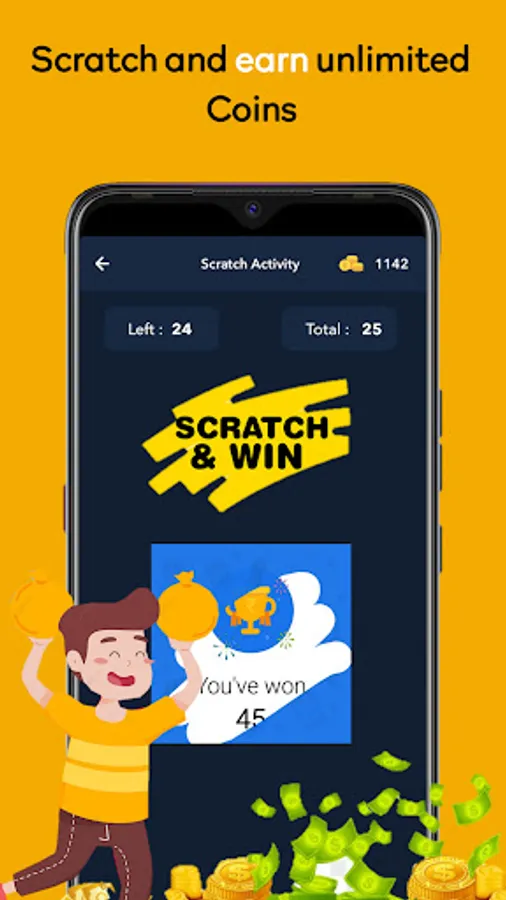 Play spin wheel to earn money, play scratch card to earn money, Fill captcha to earn money, Play Quizzes to earn money, Videos watch to earn money and play games to earn money.