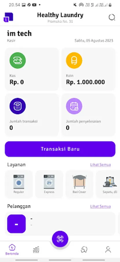 This application will help you to digitize transactions in the Laundry business. There are features that will help you not only to record transactions, but there are features to interact with customers both in the form of messages and giving bonuses or discounts during transactions. And you can keep records of incoming and outgoing cash. There is also an absence feature for your laundry employees.