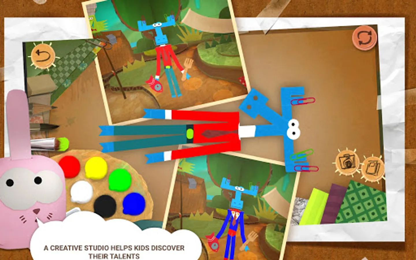 Paper Tales’ unique character editor allows you to transform your favorite friends! A bunnycat becomes a polka dot bunnywolf! And ZAP! — Aristotle the Moose becomes Horace the deer! Draw or take a photos and add it to the look of any character. Then print the specially prepared templates and art and your child can play in real life! Get your paper and scissors ready!
