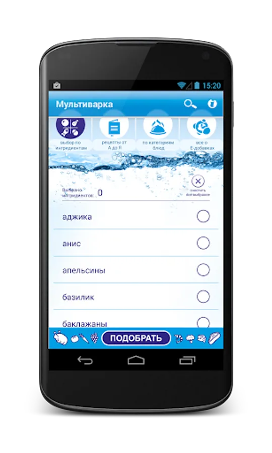 You choose the ingredients that you have in stock, and the program will select your own recipes