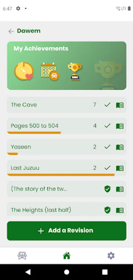 Dawem is the app to help you organize your Quran revision and recitation. Motivate yourself to keep visiting the parts you are studying of the Quran. Build your Quranic to-do-list and add the revisions to keep track of every time you read them.