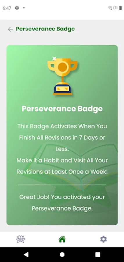 Three motivational badges will light up as you mark the items of the list as done, this will help you stay motivated to make you all your list revised continuously to keep the badges turned on.