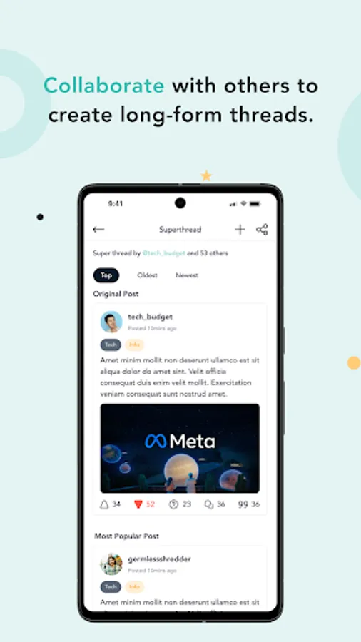 Collaborate to create long-form, curated threads with other people. You start with a post; others can contribute to the conversation and create threads. You can curate a thread, by choosing to keep the posts that are relevant to you.