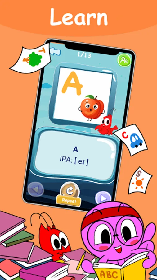 Kids learn best when they are having fun. To keep them engaged and interested, we create many fun mini games: Pop a Balloon, Guess the Word, Drag & Drop for Kids, and Kid Maestro.