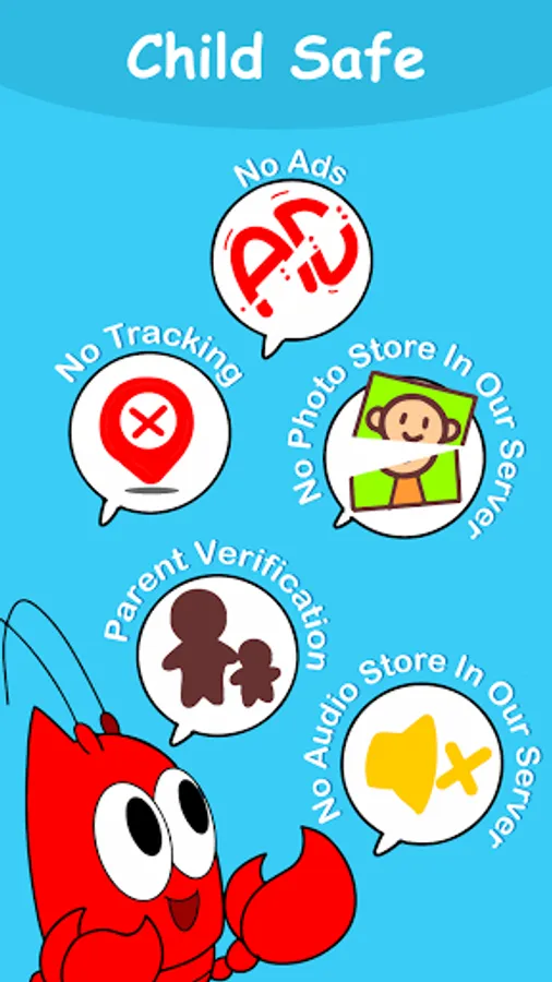 The cute lobster, Sebastian, is the main character in the app. He will guide you to various activities and cheer you up!