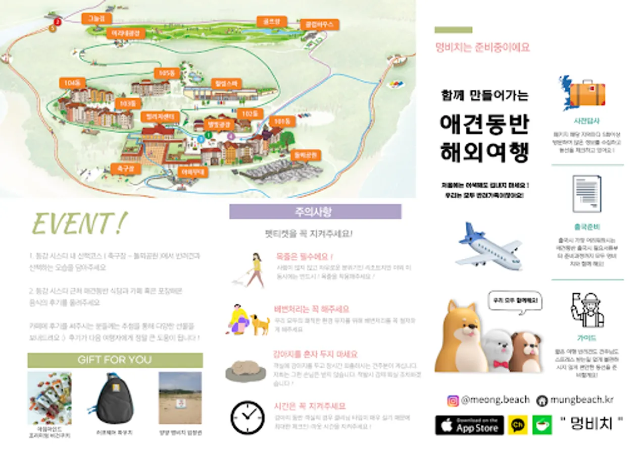 From purchasing tickets/information on Meng Beach beach in Yangyang to hotels/resorts with pets all over the country, and overseas travel, travel with your dog at Meng Beach!