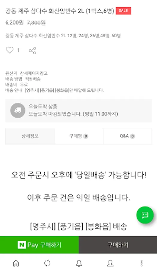 The delivery area is [In Yeongju-si, Bonghwa-eup, Punggi-eup]~