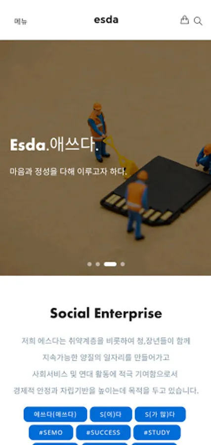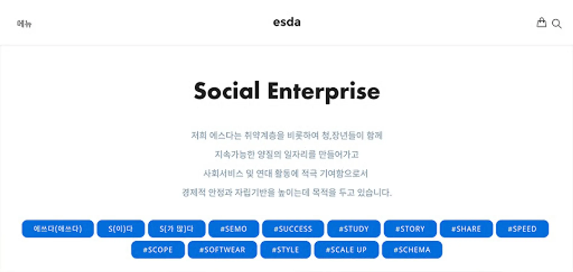 ESDA is a future performance-sharing company designated by the Ministry of SMEs and Startups. It is a (preliminary) social company designated by the Ministry of Employment and Labor and Gyeonggi-do. It is a company that regularly sponsors 1% of its sales to the vulnerable. Through Safety (safety products), Social (bisocial), and Supscription (subscription service consulting for small business owners), we are striving hard for a better tomorrow and growing.