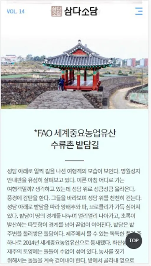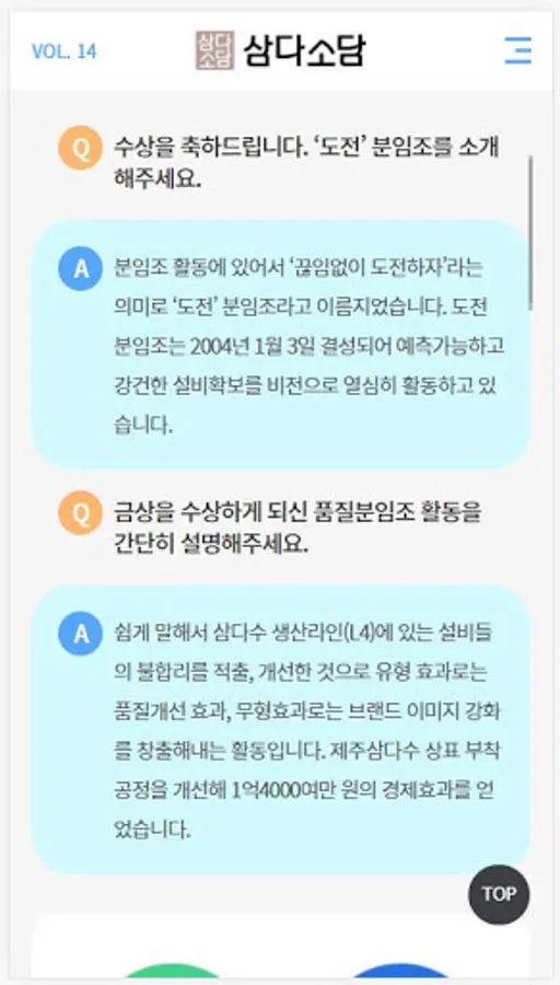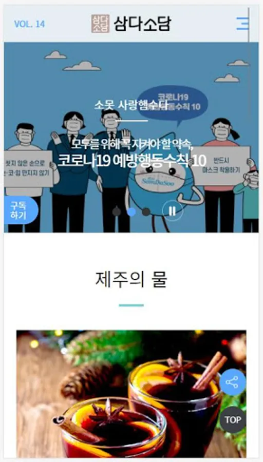 ‘삼다소담’이라는 웹진 명은 예로부터 바람, 여자, 돌이 많은 제주의 특징적인 모습을 표현한 ‘삼다(三多)’라는 단어와 소소한 웃음을 줄 수 있는 즐거운 이야기를 뜻하는 ‘소담(笑談)’을 조합해 탄생했다. ‘소담’은 순우리말로 ‘탐스럽다’ ‘풍족하다’는 의미도 함께 가지고 있어 도민의 기업으로서 추진하는 다양한 사업과 공사인들의 이야기, 제주의 즐거운 이야기와 유용한 정보를 담아 독자에게 즐거움을 선사하기를 바라는 마음을 담았다. , , 까지 세 가지 큰 카테고리 속에서 삼다수와 제주의 물에 대한 소개, 제주의 마을 탐방, 공사의 환경사랑 이야기, 도내 이색 축제와 관광지 소개, 속살이 살아있는 제주인들의 이야기와 더불어 도민의 기업인 제주개발공사 임직원들의 솔직하고 담백한 이야기들과 공사가 주최하는 행사 등 내부 소식까지 풍성하게 담았다.