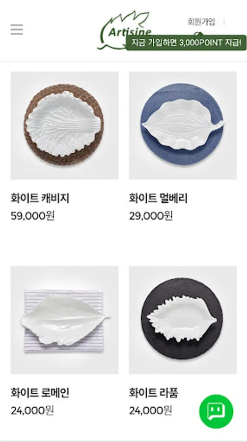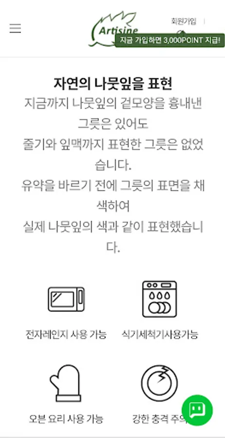 아티진 - 나뭇잎 도자기 그릇 예쁜접시 쇼핑몰 Screenshots