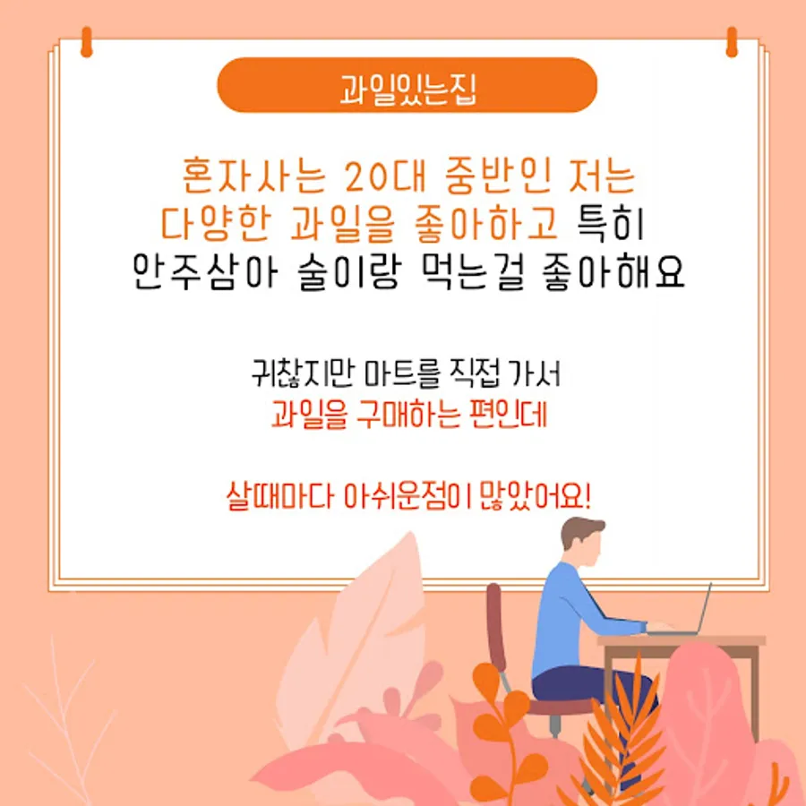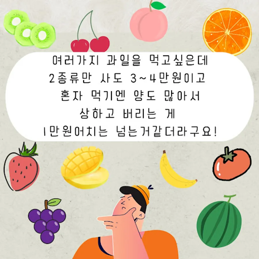 For those who live alone, it was very difficult to buy fruit on the Internet or at the mart, right?