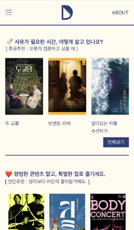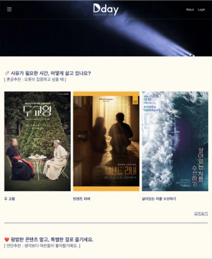 관객들의 취향과 관람 유형별로 직접 선정한 큐레이션 콘텐츠를 소개합니다.