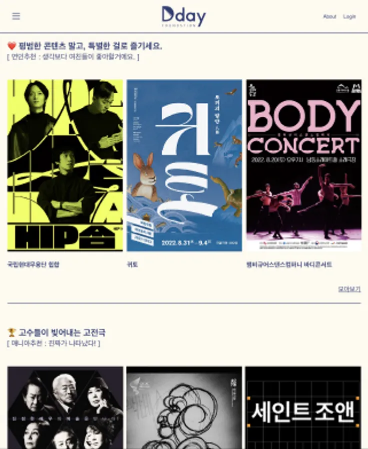 공연이 처음이어도, 매니아여도, 혼자만의 시간이 필요할 때도, 부모님, 아이들 연인과의 특별한 하루를 만들고 싶을 때도 Dday's Pick