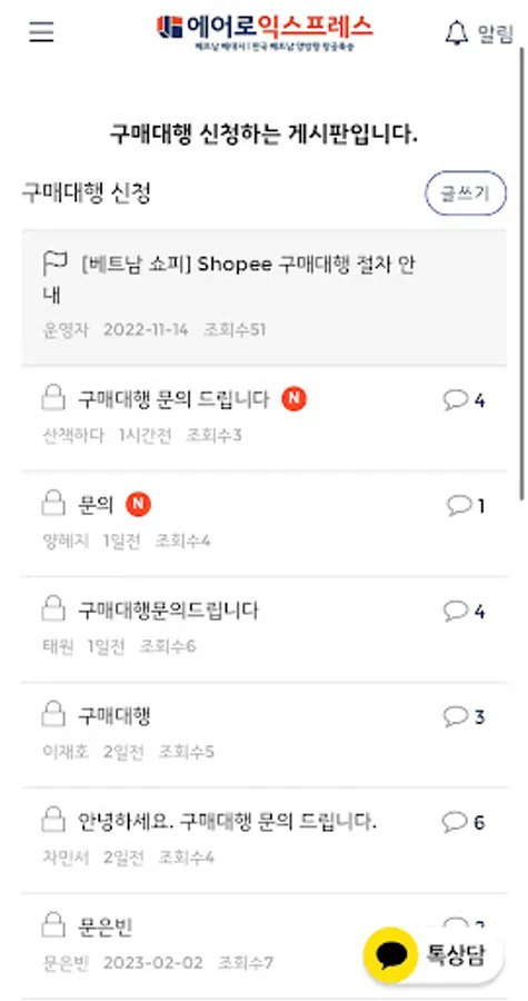 In Aero Express, you can communicate much faster with real-time KakaoTalk consultation.