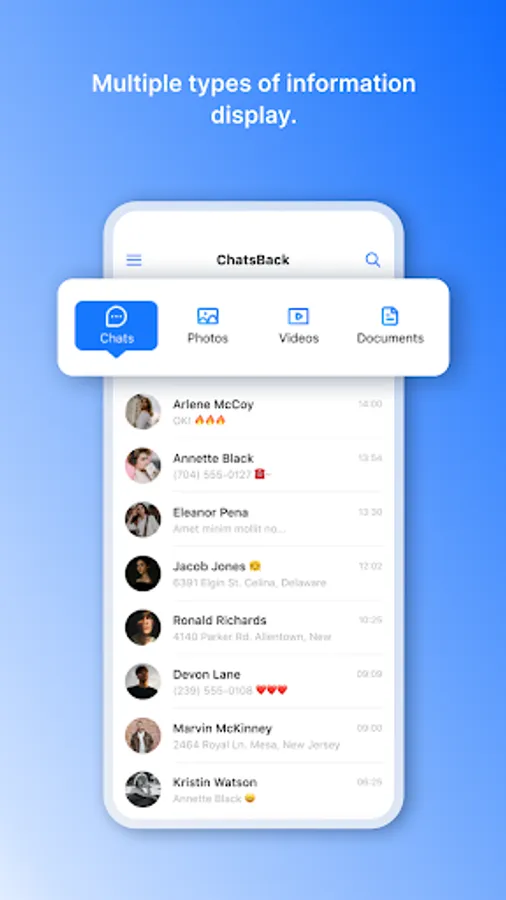 We will continue to improve our functions and experience, and expand more possibilities. Don't be annoyed by your friends always deleting messages before you see them. Open the ChatsBack app and start a pleasant journey of watching friends' messages incognito