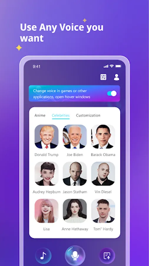 So why wait? Download Voice Changer-MagicMic now and start transforming your voice into the voices of your favorite celebrities to get cameo effects!