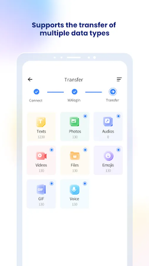 ★Unlimited: You can choose to restore multiple file types for transfer without any restrictions on their type and size. Your data will only be used for transmission and will not be retained by us and will not be disclosed to anyone.