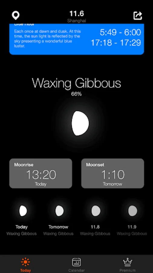 - Calendar Overview: View the precise time of any future date (Premium).