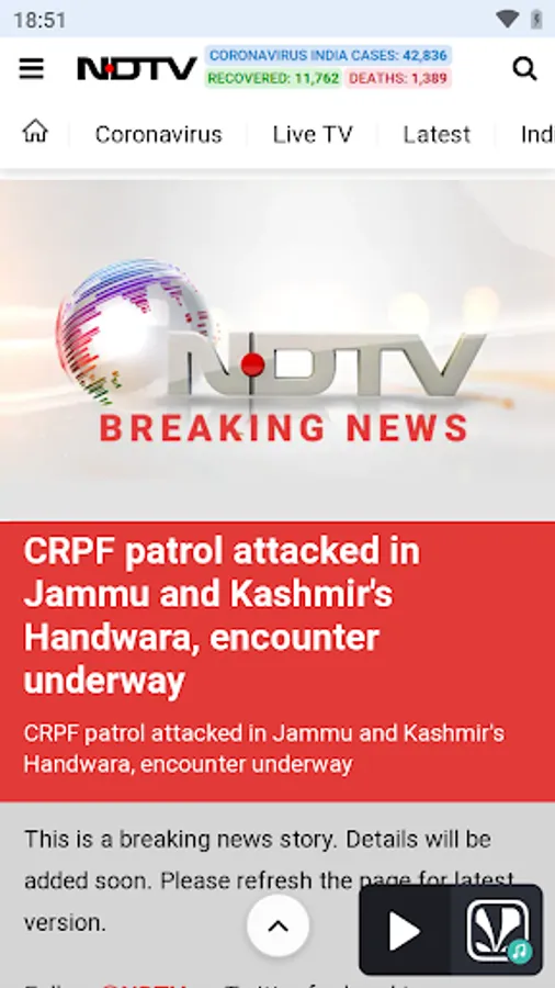 The NDTV Lite News App brings you the latest stories, videos and photos from NDTV newsrooms. Stay connected with the latest news from India and around the world. Get easy access to live TV, videos, photos, news beeps, cricket scores and more on your device with the NDTV Lite News App.