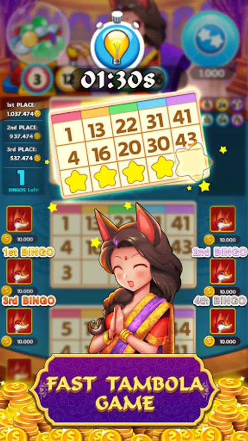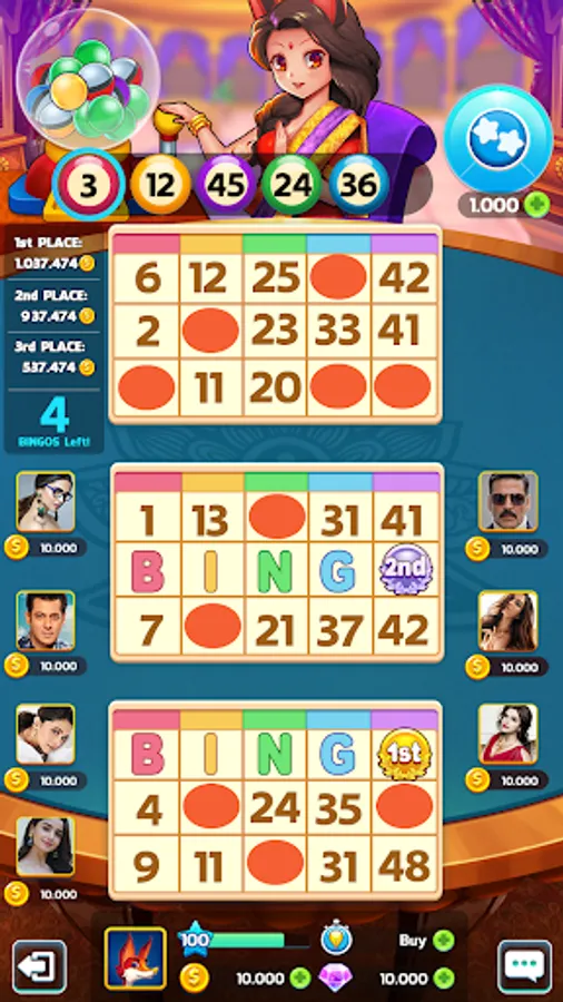 Focusing on maximizing your experiences on the app, we start with an Indian beautiful friend with lovely bunny ears – you can call her Myra – who will go with you along the journey. She will join the game with you, with each number she calls, you will daub it, and when you fill the line, you will get the bingo dauber.