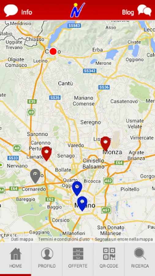 - Search for whatever you need: WhatsIN shows you a complete list of sales points and shops participating in the categories and areas that you choose, with the distance from your current position