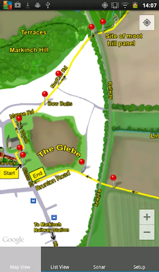 The app has a range of accessibility features and contains one trail, 19 points of interest with images and a map. Sonar mode available to devices with GPS receiver.