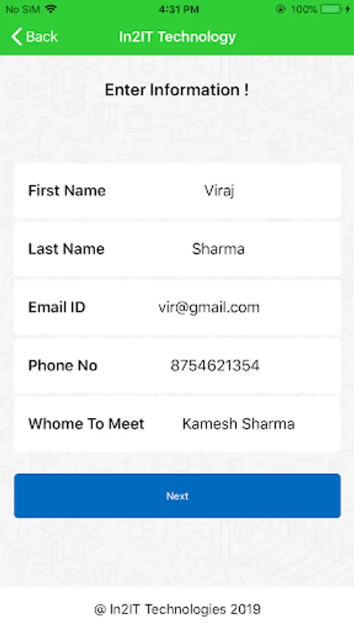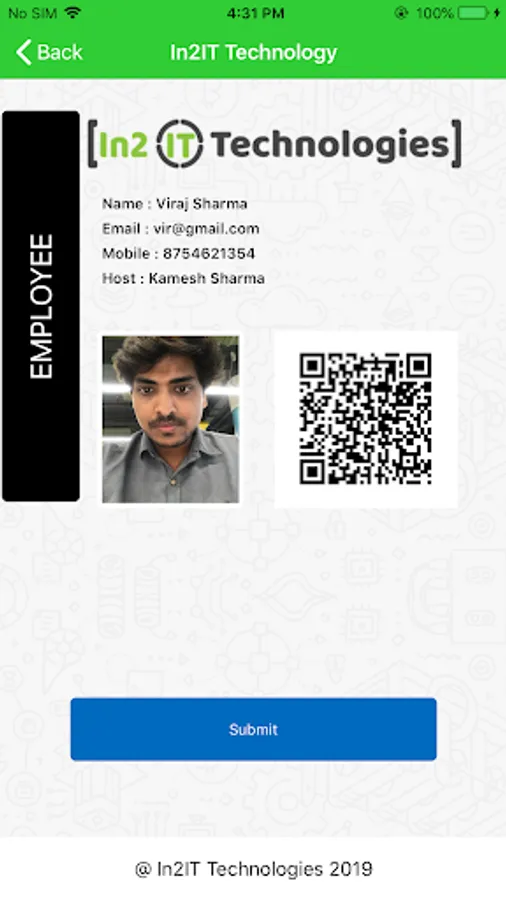 In2IT Visitor App is for visitor who come to In2IT Office such as Visitor, Employee who forget their ID Card, Vendor, Interview. This App use Signature and visitor need to click photo and upload their ID card through this App