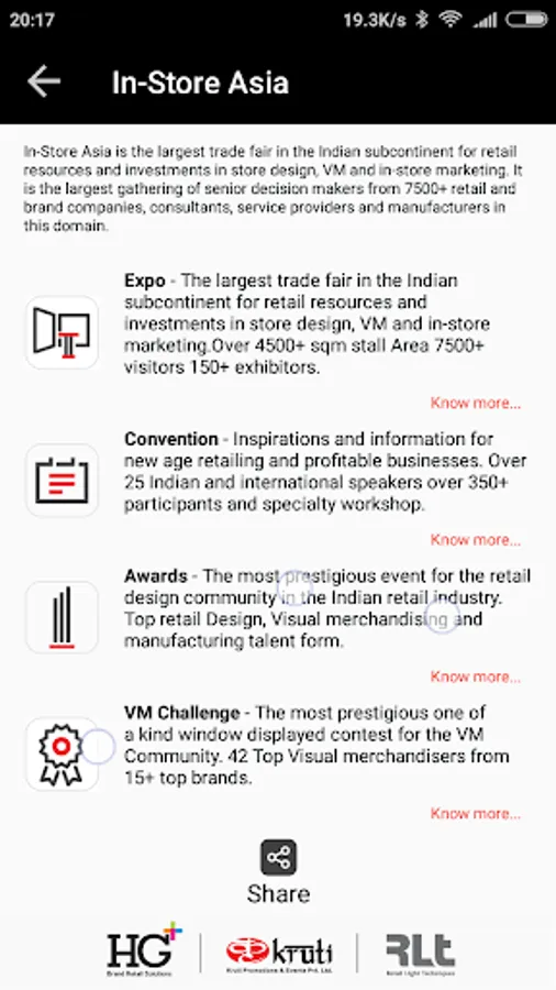 The In-Store Asia 2019 App has been designed and deployed for the convenience of all the stake holders in the event- the Visitors, the Delegates and the Organizers. The App is convenient to download onto both apple and android platforms. The user can select what do when in the venue.