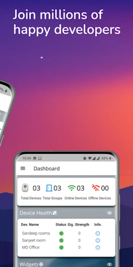 - Create widgets, gauges to monitor the sensor and you can also use custom notifications based on sensor data.
