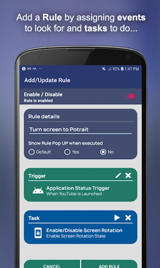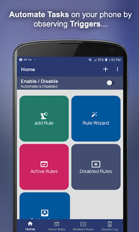 Automate - Phone Automation with Tasks & Triggers is designed to make your life easier by automating various tasks on your Android smartphone or tablet. Automate is the easiest way to automate your daily tasks on your Android smartphone or tablet. via the smart user interface. Automate offers a simple solution to make automate tasks on your device.