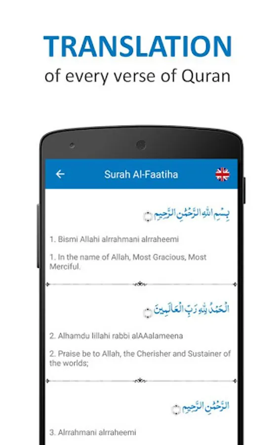• Not only there is an option of quiz but for Arabic verses translation in English is also provided.