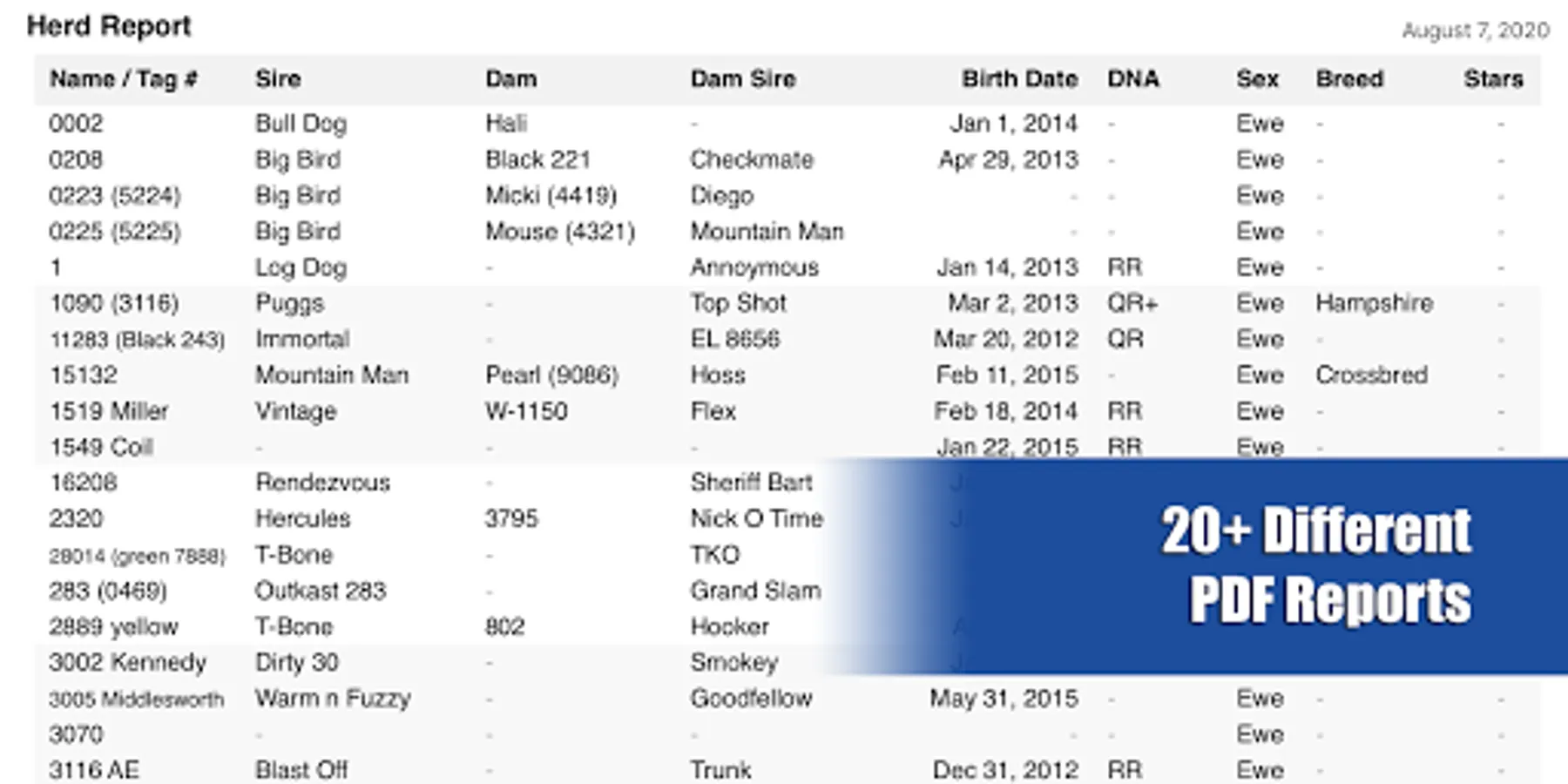 - Generates a simple one-page or two-page report that contains all of the information about any animal in your herd which makes it easy to tell buyers all about the animal