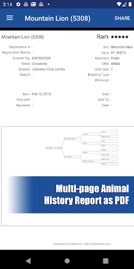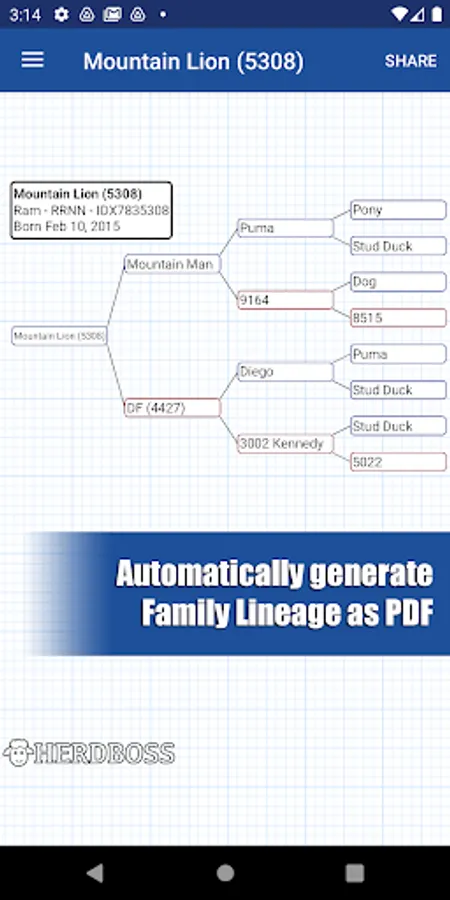 - Displays the full lineage for any animal in your herd, including Dams-and-Sires or just Sires based on your preference