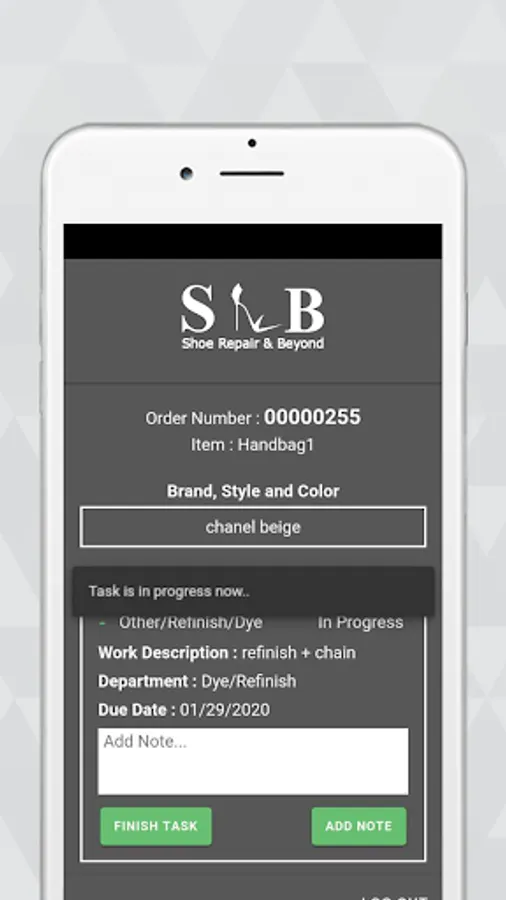 App used for tracking work flow and employees production ratios, keep track of the orders, keep customers updated on their orders, tracking of all items.