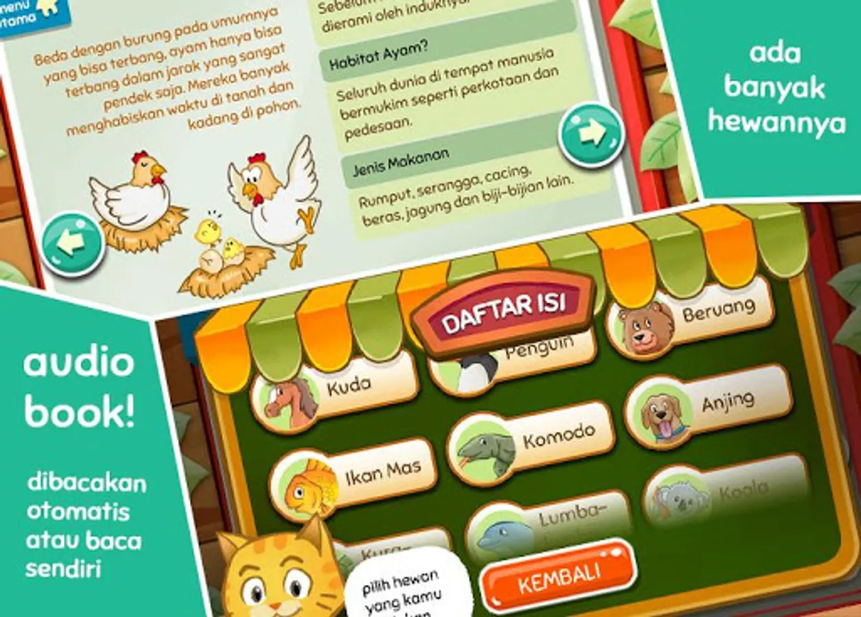 - An interactive book with full narration, read out loud automatically for you or read it yourself if you already able to read. Parents can also use this application as a storybook with animal theme.
