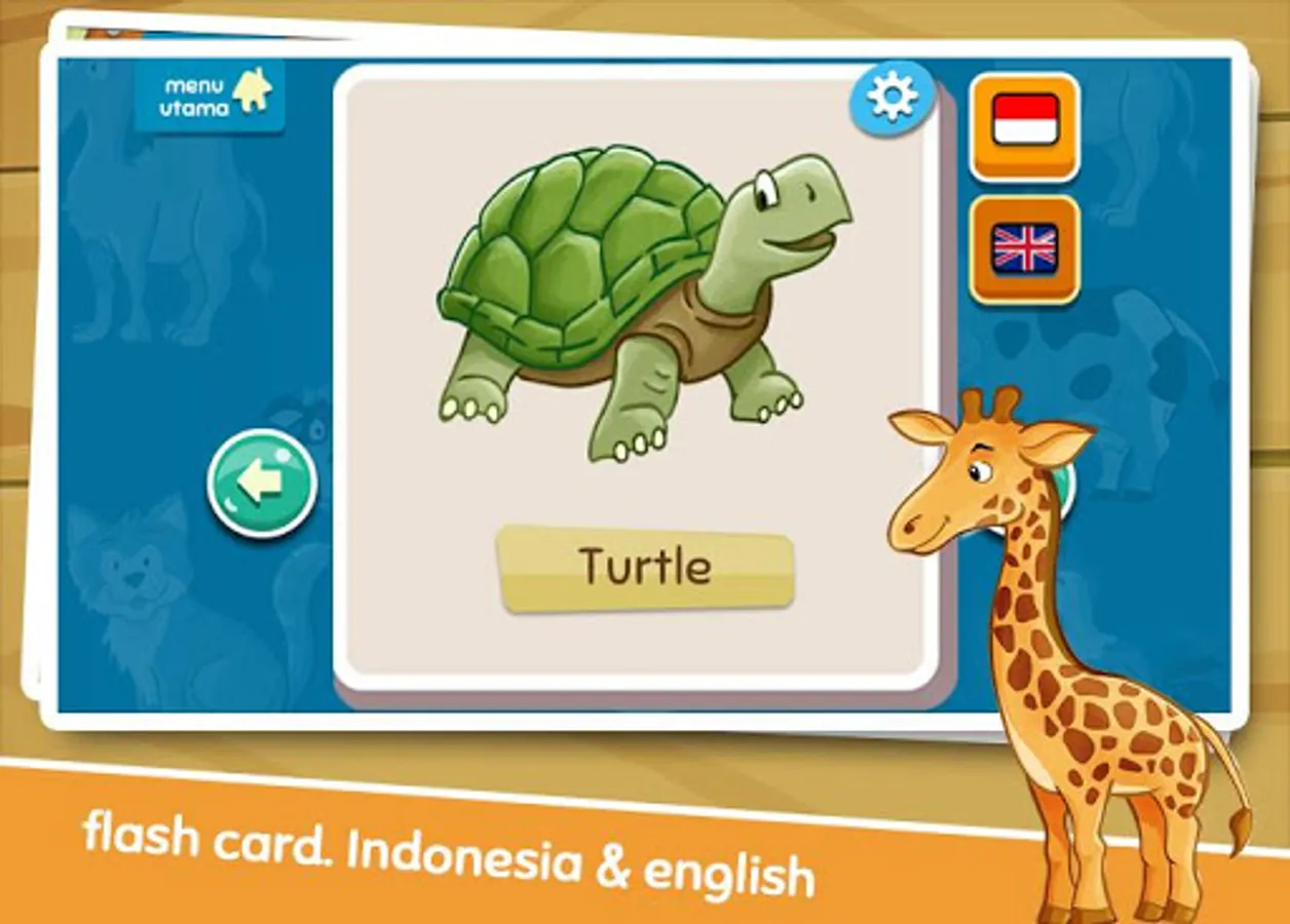 - Flashcard mode / smart card, as an effective learning methods to identify names, shapes and sounds of animals.