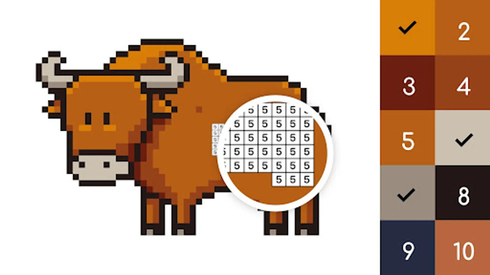 SUPER EASY GAMEPLAY: Fill colors in pixel blocks with the same numbers, and you’ll have a piece of super cool pixel art!