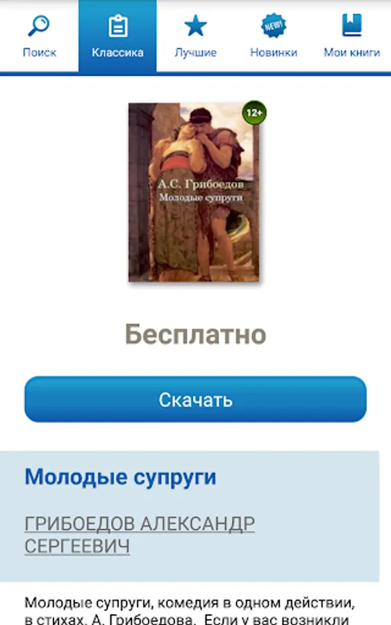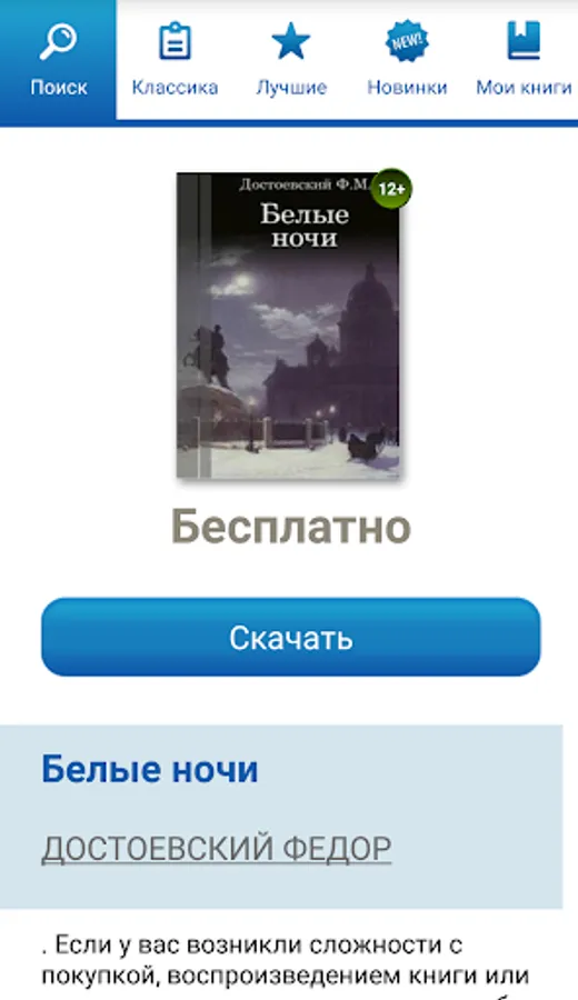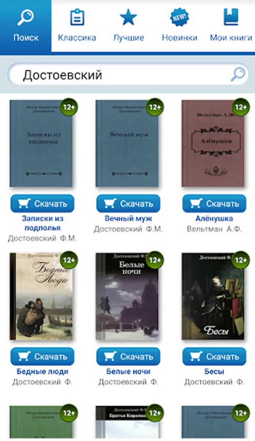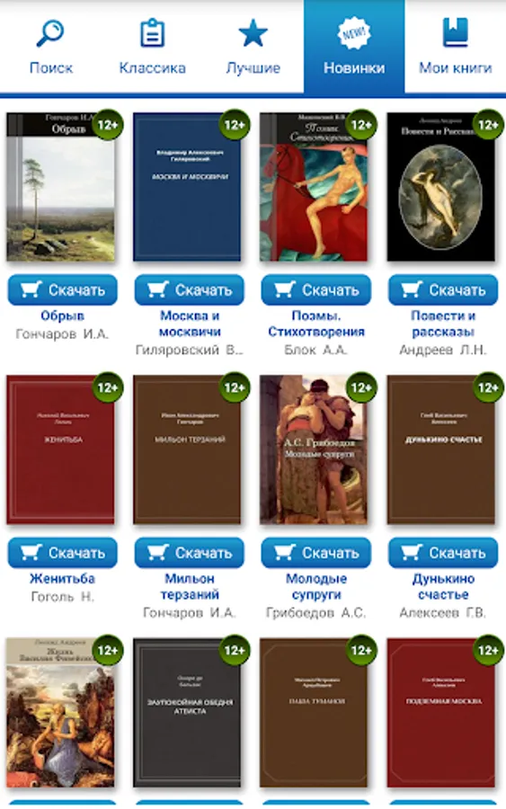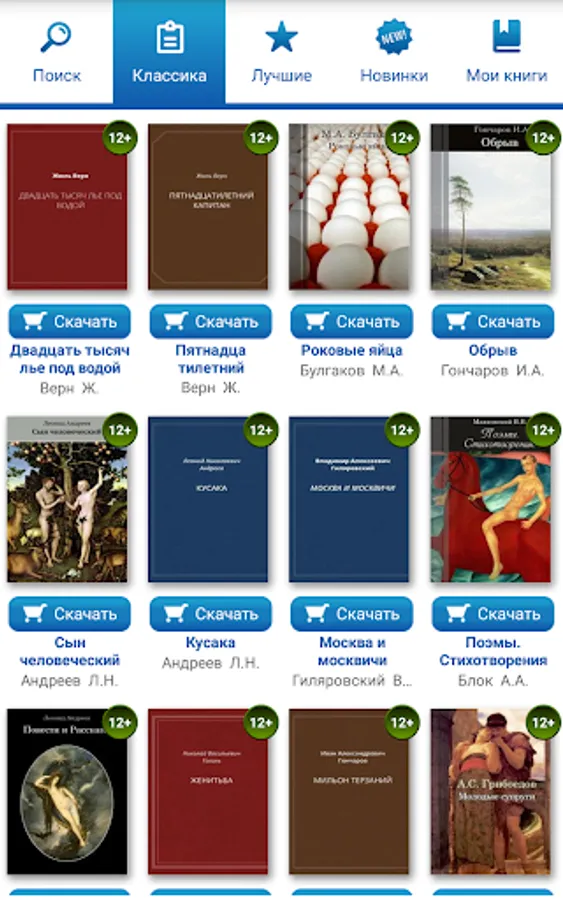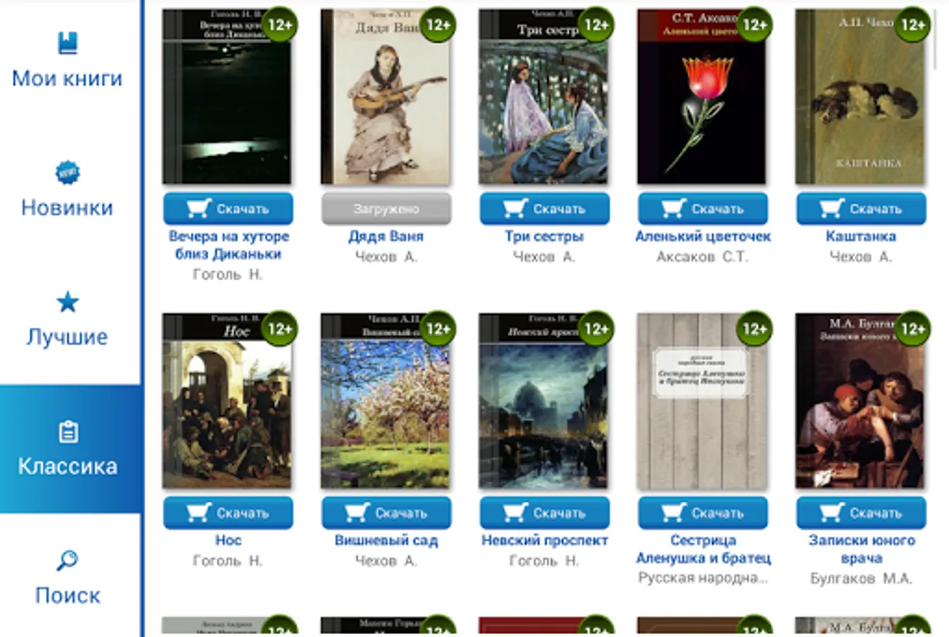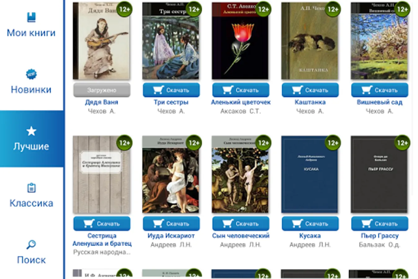 In BookTouch you have access to the books of the great classics: A.S. Pushkin, L.N. Tolstoy, N.V. Gogol, I.S. Turgenev, A.P. Chekhov, M.Yu. Lermontov, M.A. Bulgakov, Andreev L.N., Artsybashev MP, Afanasyev A.N., Blok A.A., Bryusov V.Ya., Veltman A.F., Garin-Mikhailovsky N., Heintse E.N., Goncharov I. A., Gorky M., Griboedov A.S., Greene A.S., Ershov P.P., Zhitkov B., Zhukovsky V.A., Karamzin N.M., Korolenko V., Kuprin A.I. , Leskov N.S., Mamin-Sibiryak D., Nekrasov N.A., Odoyevsky V.F., Ostrovsky A.N., Radishchev A.N., Saltykov-Shchedrin M., Solov'ev S.M., Sologub F.K., Fonvizin D.I., Marina Tsvetaeva, Sasha Cherny, Anton Chekhov and many others.